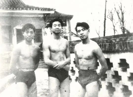 学生时代的袁隆平(左一)酷爱游泳。袁隆平本人图片均由湖南杂交水稻研究中心提供