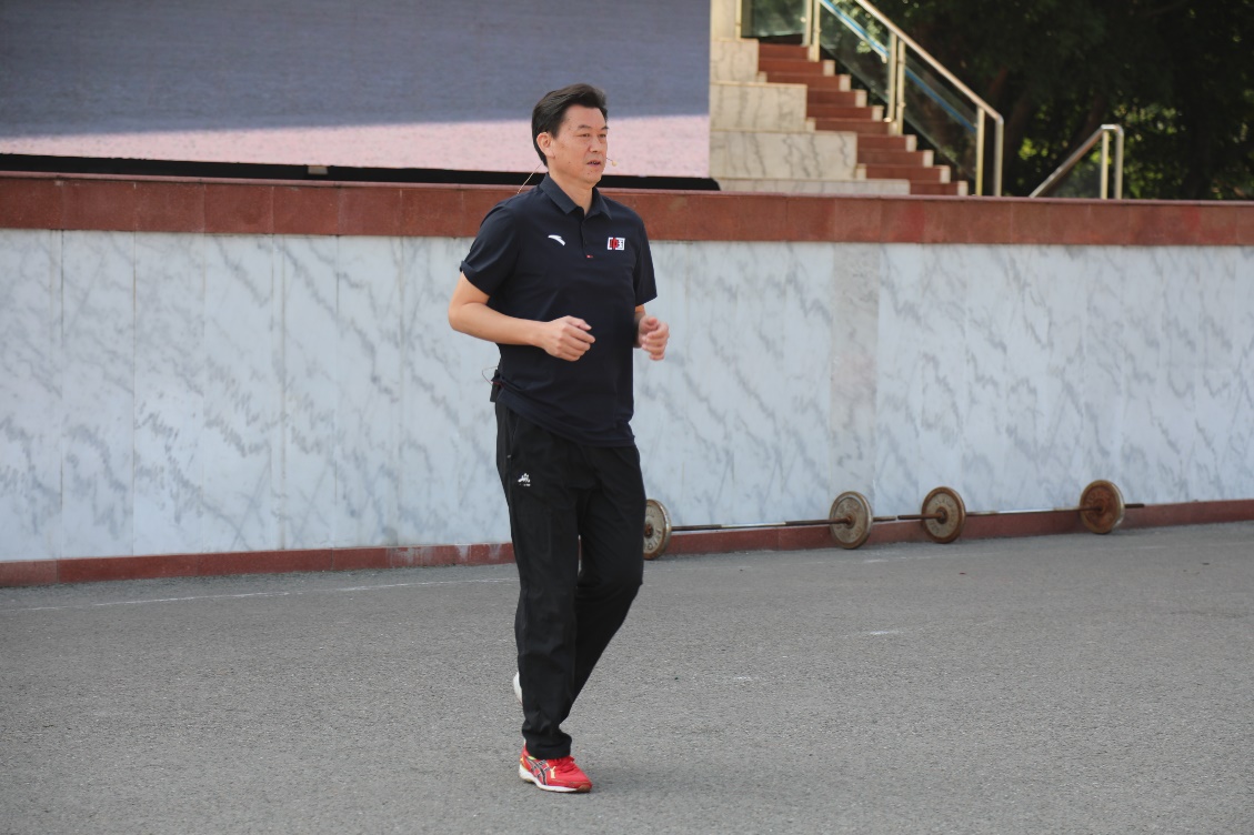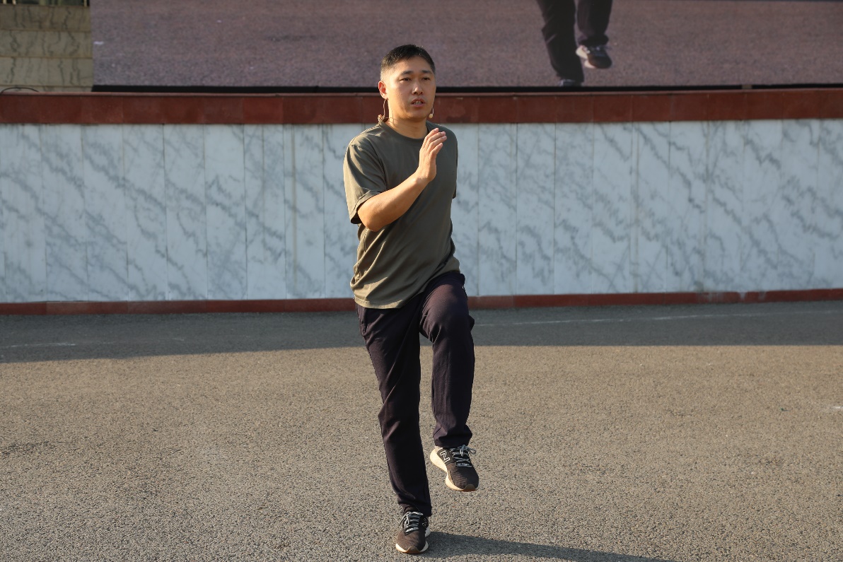 田游部潘仲秋老师针对官兵日常体能科目,采用理论与实操相结合的授课方法,结合优秀学生运动员的示范,对日常军事体育科目训练动作要领进行指导、纠正。
