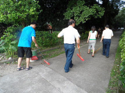 为积极响应学校《关于开展环境卫生大扫除暨教职工党员主题党日活动的通知》的精神,深入推进“美丽广西.清洁乡村.美丽校园” 活动的全面展开。2013年7月5日下午5点,在学院党委的号召下,我院组织领导干部、教工党员开展“打扫卫生,党员先行”主题党日活动。主要对本院卫生责任区域进行卫生大扫除。