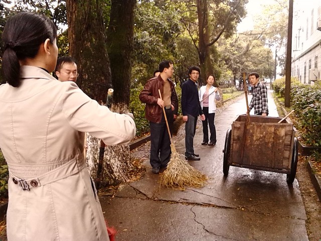 图为我院 教工在进行“美丽校园“大扫除活动