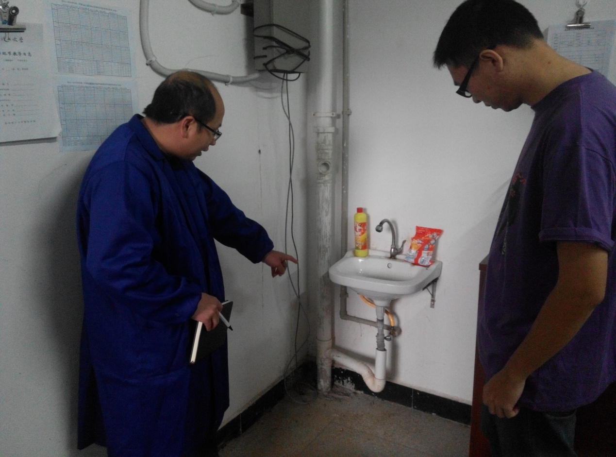 2015年9月6日下午,机械工程实验中心教师对上周学院领导到实验室的检查与指导中发现的一些需要解决的问题进行了开会讨论,首先,三楼考研自习室要装上灯,同时把桌子搬进去,不能耽误学生在考研自习室的考研复习;其次,08415实验室要及时更换打不开的锁,08315实验室的大柜子要搬下来,08413研究生机房的纸箱要搬走,实验室要保持整洁干净。另外,要对各个实验室进行全面检查,统计好门锁,风扇以及灯的损坏情况,及时向后勤处保修,一定要做好实验室的总体布置工作。