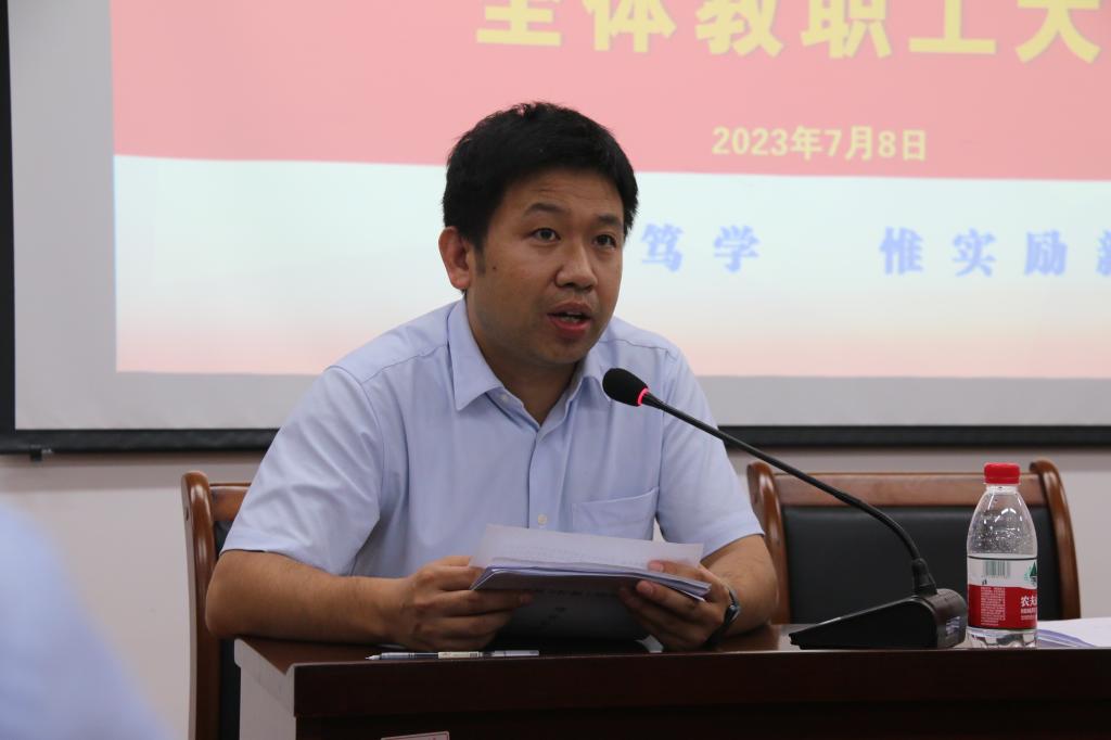 最后,学院党委书记李治,对此次学院召开的一届一次教代会的背景及意义做了说明,并向全体教职工提出了以下意见:一是加强党的领导,充分保障全体教职工依法行使民主权利、参与民主管理和决策,共同分享发展成果的权利;二是对标发展任务,把思想和行动统一到这次会议的重大成果上来,凝心聚力推动各项工作落地生根;三是提高政治站位,以扎实有效的行动营造学院发展的良好氛围。