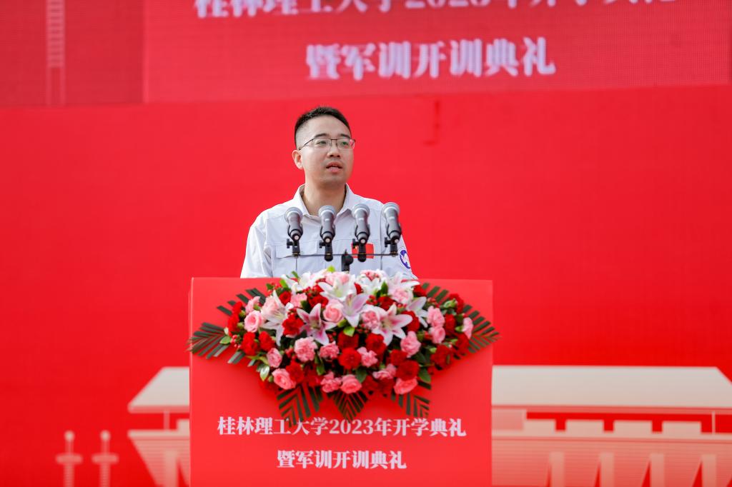 2023年9月11日上午,桂林理工大学2023级开学典礼在雁山校区田径场隆重举行,我院周祥老师作为青年教师代表在开学典礼上作题为《志存高远勇毅行 踔厉奋发向未来》的主题发言。