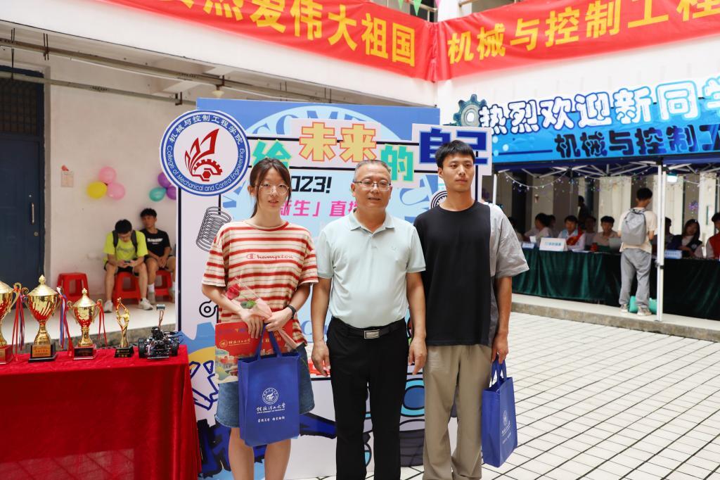 王敦球校长与新生合影