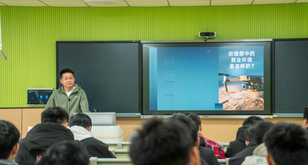 王宥纶从就业形势分析、行业就业行情分析、企业运作模式三个方面为学生带来了专业讲解。“毕业后你能做什么工作?”抛出问题之后,王宥纶用国家官方平台公布的近几年国民经济运行情况和对比智联招聘《2022年、 2023年大学生就业力调研报告》两年间的数据变化,让学生清晰的认知了当前的就业形势。“我准备好找工作了吗?”“我能找什么工作?”“我该怎么找工作?”随后王宥纶再次用三个问题直击学生内心,通过深入浅出的讲解,引导学生树立正确的择业观、就业观。随后他还教授了学生“找工作”和“干工作”的技巧和方法。
