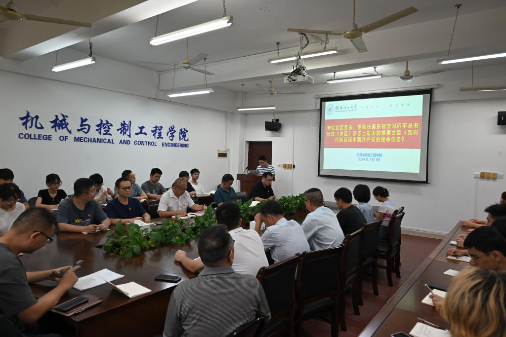 7月1日下午,学院在07215会议室隆重开展了“奋进新征程 建功新时代”—庆祝建党103周年主题党日活动,回顾党的光辉历程,弘扬党的优良传统,激发广大党员的爱国热情和奋斗精神。活动由学院党委委员、副院长吴东主持,学院领导班子成员、教工党员、2024年新发展党员参加。