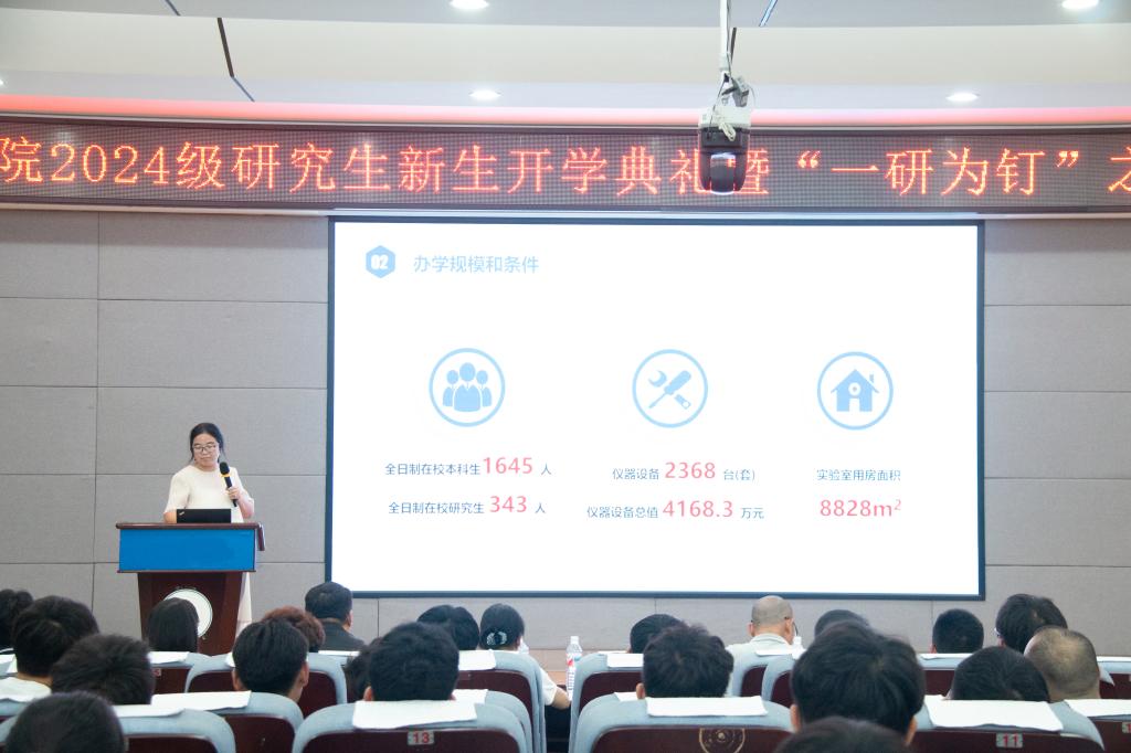 会上,学院分管研究生工作的于雁南副院长首先做了学院情况介绍,从发展历程、办学现状、科学研究、人才培养几个方面展开介绍了学院的历史、成就和未来展望,同时对《学位法》进行了解读,引导同学们关注最新国家政策导向,培养创新思维。最后她也分析了研究生就业形势,希望新生们通过研究生阶段的学习,为自己的职业生涯打下坚实基础。