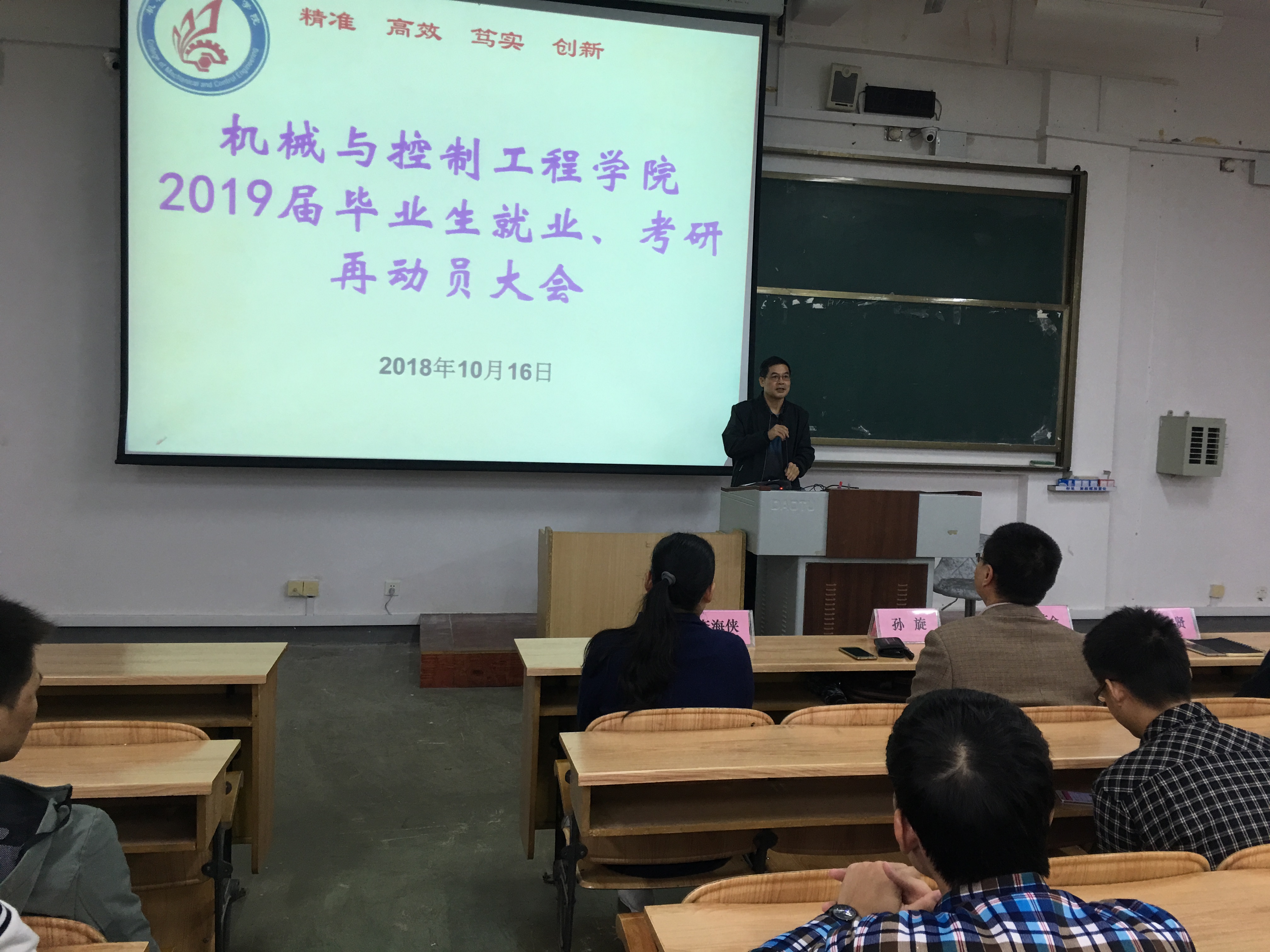 为进一步加强毕业生管理,提高学生就业、考研的积极性,10月16日下午,我院在06409教室召开了2018届毕业生就业、考研再动员大会。大会由学院党委副书记耿俊茂主持,学院党委书记麦范金,副院长孙旋、李海侠、钟志贤、负责就业工作的辅导员韩波及2019出全体毕业生参加了本次再动员大会。
