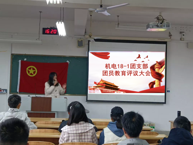 评议大会开始,在机电18-1团支书杨钰锋同学的主持下,全体团员通过对自己上一学年的学习情况、思想提升和学生工作等方面的进行了严肃客观的总结。每个团员在自我评价后由其他团员进行提问或补充。