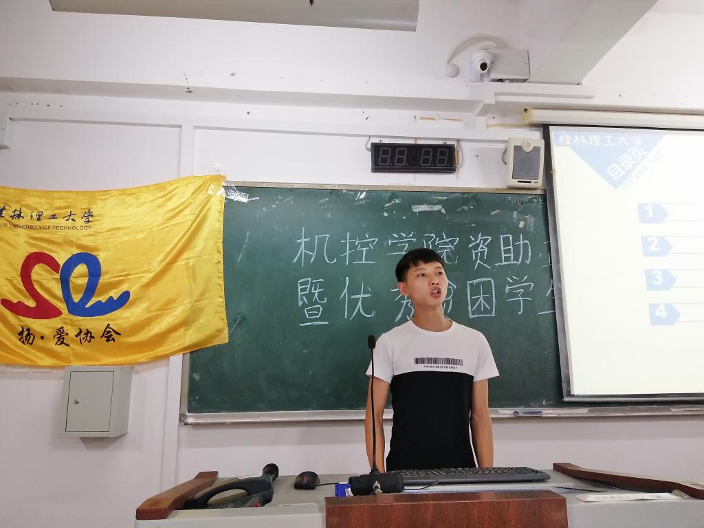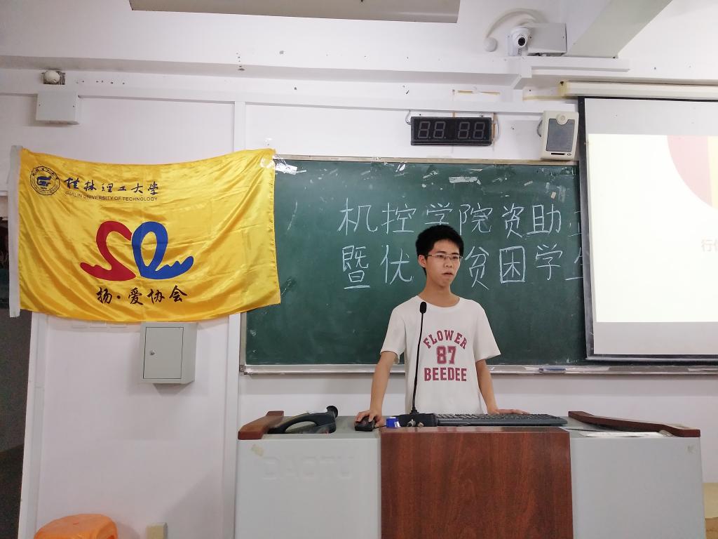 2018年5月18日晚上,由扬•爱协会承办机控学院资助政策活动月颁奖仪式暨优秀贫困学生报告会在雁山06301教室举行,学院16级辅导员刘金良老师参加。