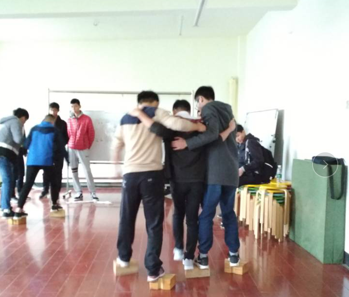 首先,刘金良老师带队参观了学校心理健康中心,包含瑜伽室、情绪发泄室、心理阅读室、行为观察室、沙盘游戏室等。然后,在素拓活动室开展了两个素拓活动,在“汉诺塔”游戏中,3个团队都顺利完成了游戏,游戏的主旨是提升同学们的沟通能力、领导力、目标规划能力、团结合作能力等;在“冰海沉船”游戏中,两个团队3次挑战均失败了,游戏主要是希望两个团队打破思维限制,实现共赢,并在活动中进行团结合作。