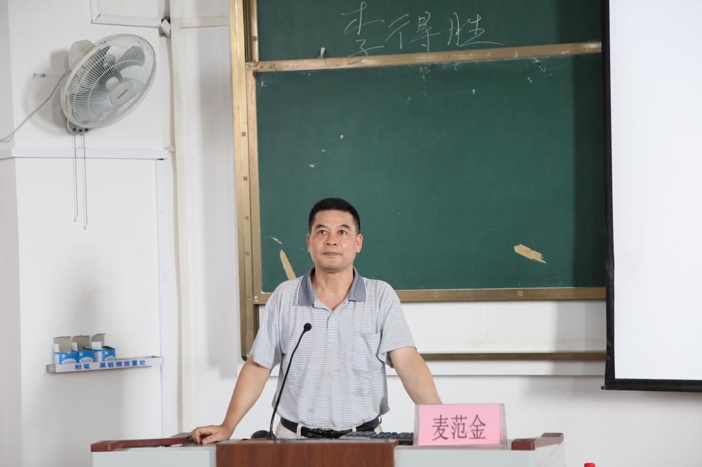 接着,学院党委书记麦范金教授作《不忘初心,继续努力,做合格的大学生》的主题报告。他从学习环境、学习方法等方面来说明大学与中学的异同。同时,他提出:一、坚定理想信念,筑牢精神支柱!二、继续努力,迎接新挑战。三、制定人生奋斗目标,做合格大学生!最后,在安全教育环节中,党委副书记邓洁琼老师和刘颖洁老师分别在两个教室通过触目惊心的安全事件介绍九大安全注意事项,包含了财物安全、用电安全、交通安全、游泳安全、运动安全、饮食卫生安全、勤工俭学安全、网络安全、身心安全帮助新生自我安全防范意识和能力。