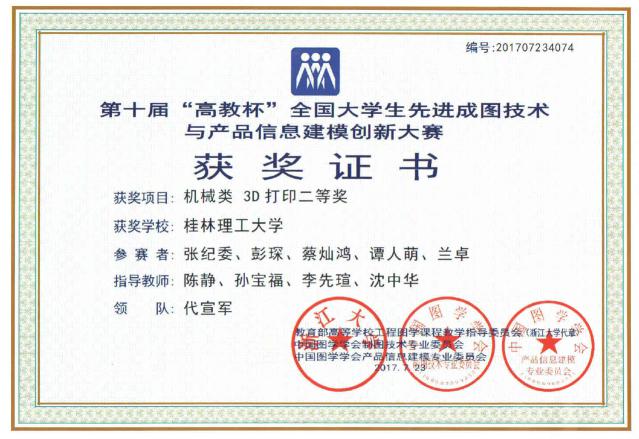 机械与控制工程学院学子参加了机械类团体和个人项目。最终,由张纪委、彭琛、蔡灿鸿、谭人萌和兰卓组成的团队获得机械类3D打印二等奖,彭琛获得机械类尺规绘图二等奖,黄业珊获得机械类建模二等奖。这是我院首次参加该项赛事,取得了较好成绩,为今后该领域竞赛的组织开展奠定了良好基础。