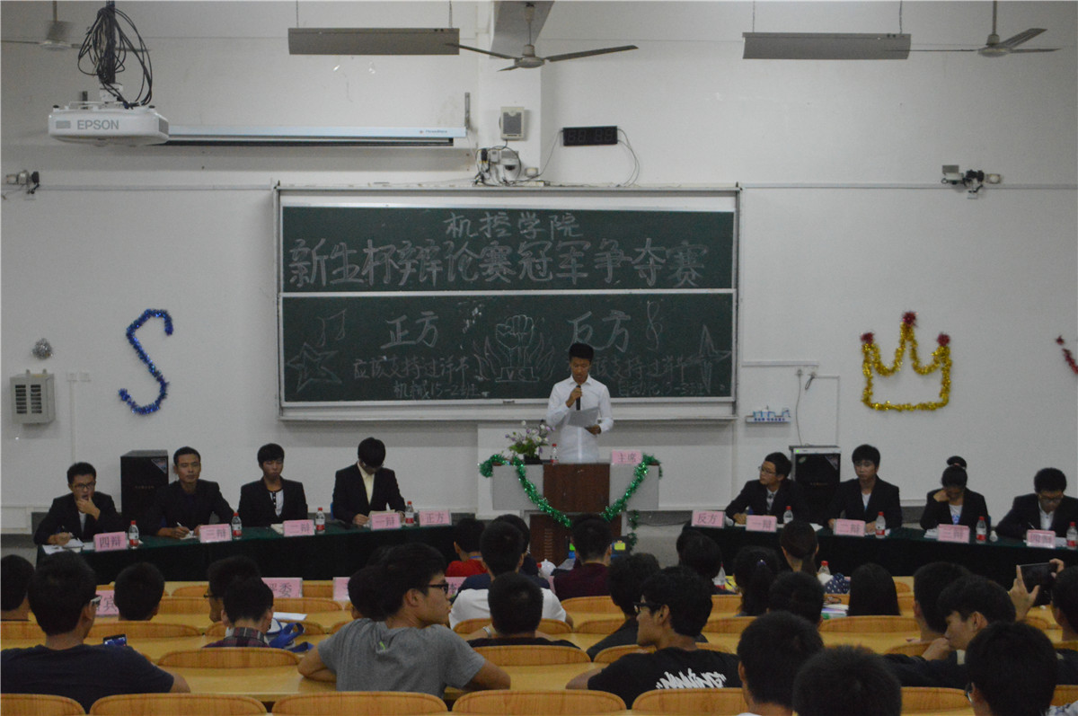 11月6日晚7点,我院在05307教室举行了“新生杯”辩论赛总决赛,邀请到化生学院、外国语学院、人文学院辩论队队长以及机控学院辩论队队长、副队长担任本次比赛的评委,机控学院团委学生会主席团作为本次比赛的嘉宾出席。