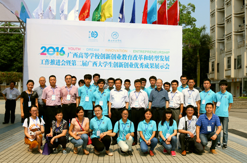 5月7日,由自治区教育厅主办的广西高等学校创新创业教育改革和转型发展工作推进会暨第二届广西大学生创新创业优秀成果展示会在广西财经学院举行。学校校长解庆林、副校长梁福沛带队参加相关活动,创新创业学院、教务处、团委、发展规划与教学质量监控中心、学工处、招就处、研究生院、南宁分校等部门负责人,大学生创新创业训练项目指导教师和学生代表50余人参加了此次展会。其中我院共有11名学子参加了此次成果展。