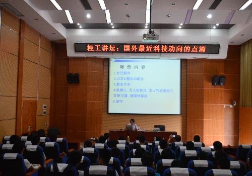 2016年7月6日下午14点30分,日本熊本大学阮立群教授应我院邀请,在雁山萃华楼报告厅做“国外最近科技动向的点滴”讲座,学院副院长李海侠、院长助理钟志贤、机械和自动化教研室部分教师等参加了讲座,讲座由机械教研室主任代宣军老师主持。