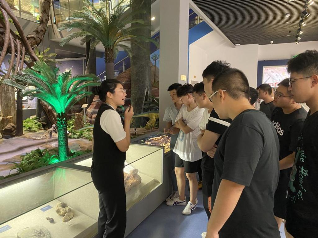 随后,讲解员又带领同学们参观了恐龙图示区和地质勘探区。在恐龙图示区,为同学们讲解了各个时期的各种不同恐龙物种的特点以及恐龙灭亡的经历。在地质勘探区,为同学们介绍了各种地质资源,并对世界上最早的地震预报仪器—候风地动仪以及其他地质相关设备进行了原理和简单构造讲解。