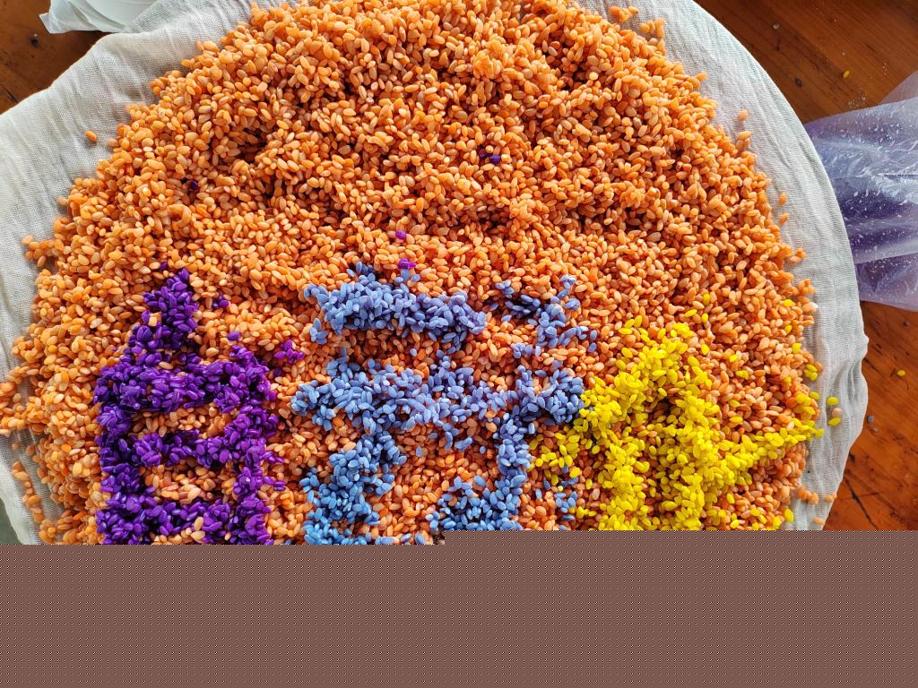 同学们正在制作五彩糯米饭