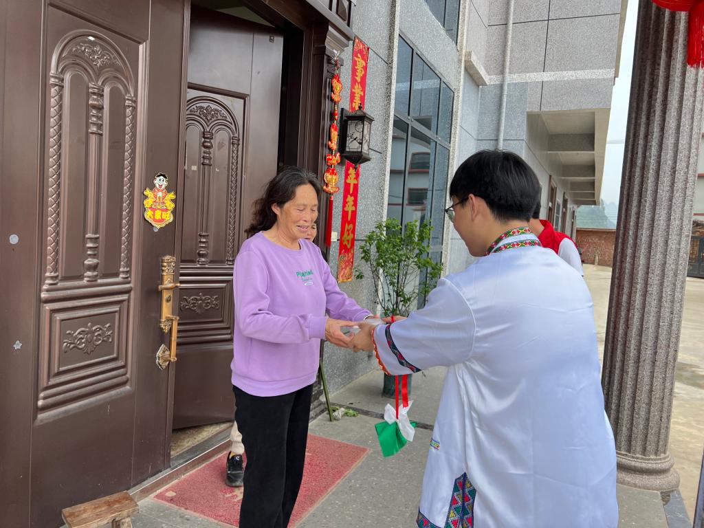 同学们为村民送糯米饭