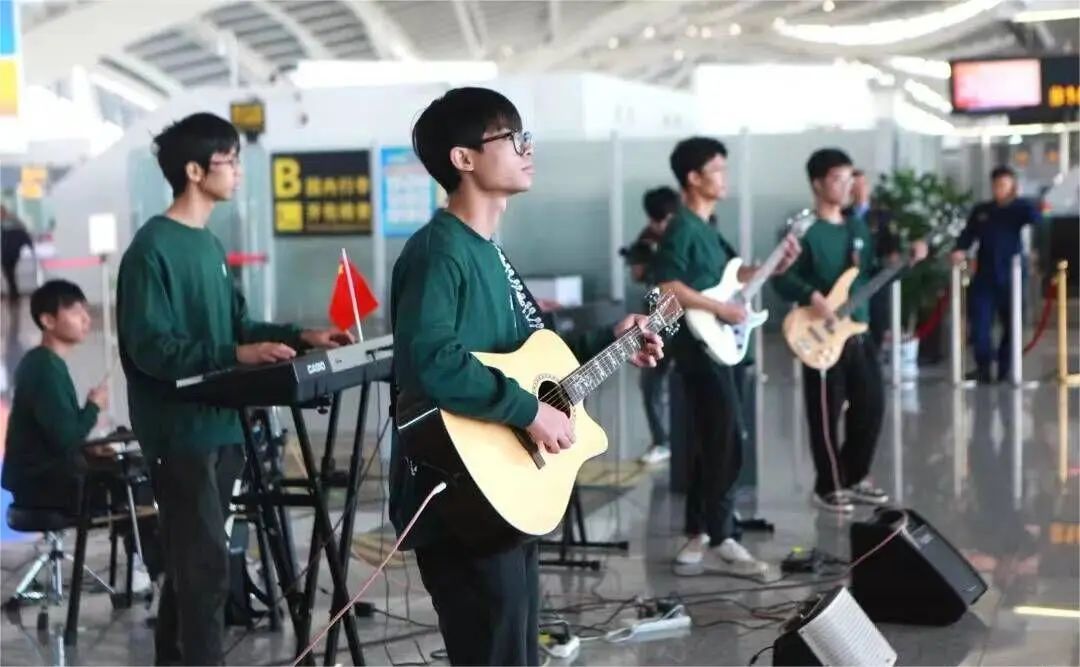 11月21日上午,我院消防车乐队代表我校受邀前往桂林两江国际机场参加“青春快闪,热血消防”主题活动,与消防队队员们激情互动。