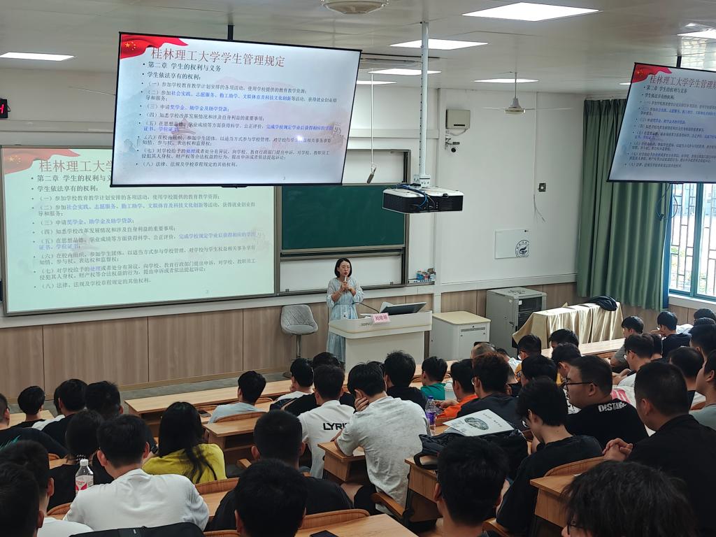 2024年9月13日,学院在7120开展了校纪校规及研究生评奖评优入学教育,主讲人为研究生辅导员刘培培,全体研究生新生参加。