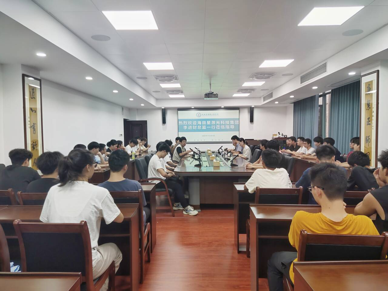 随后,李进财总监对当前的就业形势进行了全面而深入的剖析。他指出,随着科技的飞速发展和产业结构的不断优化,激光科技领域正迎来前所未有的发展机遇。然而与此同时,市场竞争也日益激烈,对人才的需求也呈现出多元化、专业化的特点。因此,他鼓励同学们要紧跟时代步伐,不断提升自己的专业技能和综合素质,以更好地适应市场需求。李总监还详细介绍了海目星激光科技集团的企业文化、发展前景以及人才招聘计划,为同学们提供了宝贵的就业信息和指导。