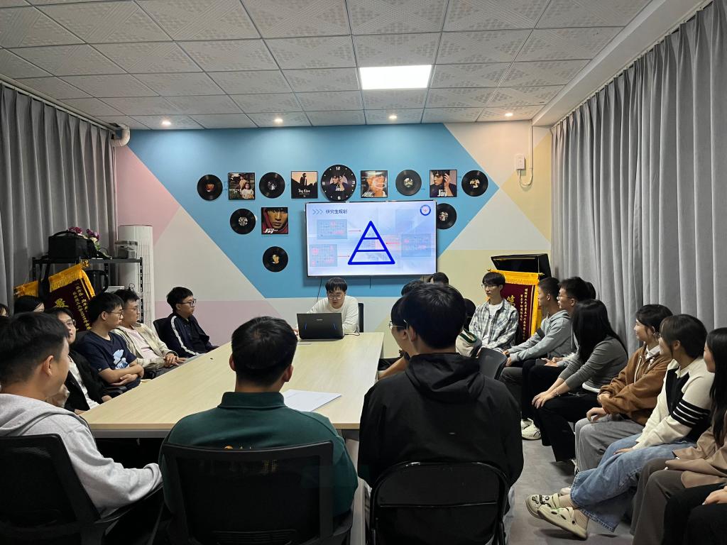 首先是由郑新鹏分享的学术经验交流,他围绕“文献检索与阅读技巧”、“实验设计与数据分析”、“科研时间管理”等主题展开,分享了他在科研过程中遇到的挑战、解决策略、成功经验及失败教训。接下来是英语学习经验分享,分享人是陈芷兰,她结合“高效英语学习策略”、“学术英语写作与发表”等,她分享了如何平衡专业学习与英语学习,如何利用在线资源提升语言能力等。同时,她也分享了具体的学习材料、APP推荐及每日学习计划安排。在研究生学业规划部分,分享人屠凯科强调了明确个人目标的重要性。他指出,研究生阶段是个人学术成长和职业发展的关键时期,因此必须制定一个明确、可行的规划。在规划过程中,要充分考虑自己的兴趣、专业背景和职业规划,确保规划既具有挑战性又切实可行。他还建议,在制定规划时,要将目标分解为具体的任务和时间节点,确保每个阶段都有明确的任务和目标。在竞赛经验分享环节,分享人杨振结合竞赛经验,分享了参赛动机、团队组建、项目策划、准备过程、遇到的困难及解决方案等。他强调团队合作的重要性,以及如何在竞赛中锻炼解决问题的能力。最后一个是研会干部经验分享,分享人陈长东围绕“领导力培养”、“团队协作与沟通”、“活动策划与执行”、“学生组织管理经验”等主题开展,跟大家讲述了如何有效管理团队、策划并执行大型活动等。强调服务意识、时间管理和情绪调节的重要性。分享现场精彩纷呈,同学们纷纷举手提问,气氛热烈。