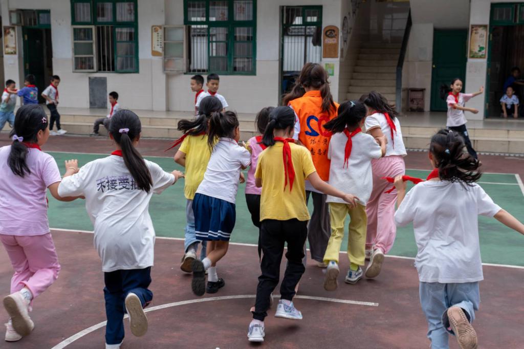 在游戏环节,志愿者们精心策划了一系列丰富多样的游戏。接力比赛中,孩子们和志愿者们混合组队,奋力冲刺,操场上的加油声、欢呼声此起彼伏。猜谜语环节,孩子们积极思考,为有趣的谜底发出阵阵欢笑。志愿者们通过游戏引导孩子们发挥团队合作精神和个人潜能,同时也增进了彼此之间的友谊。