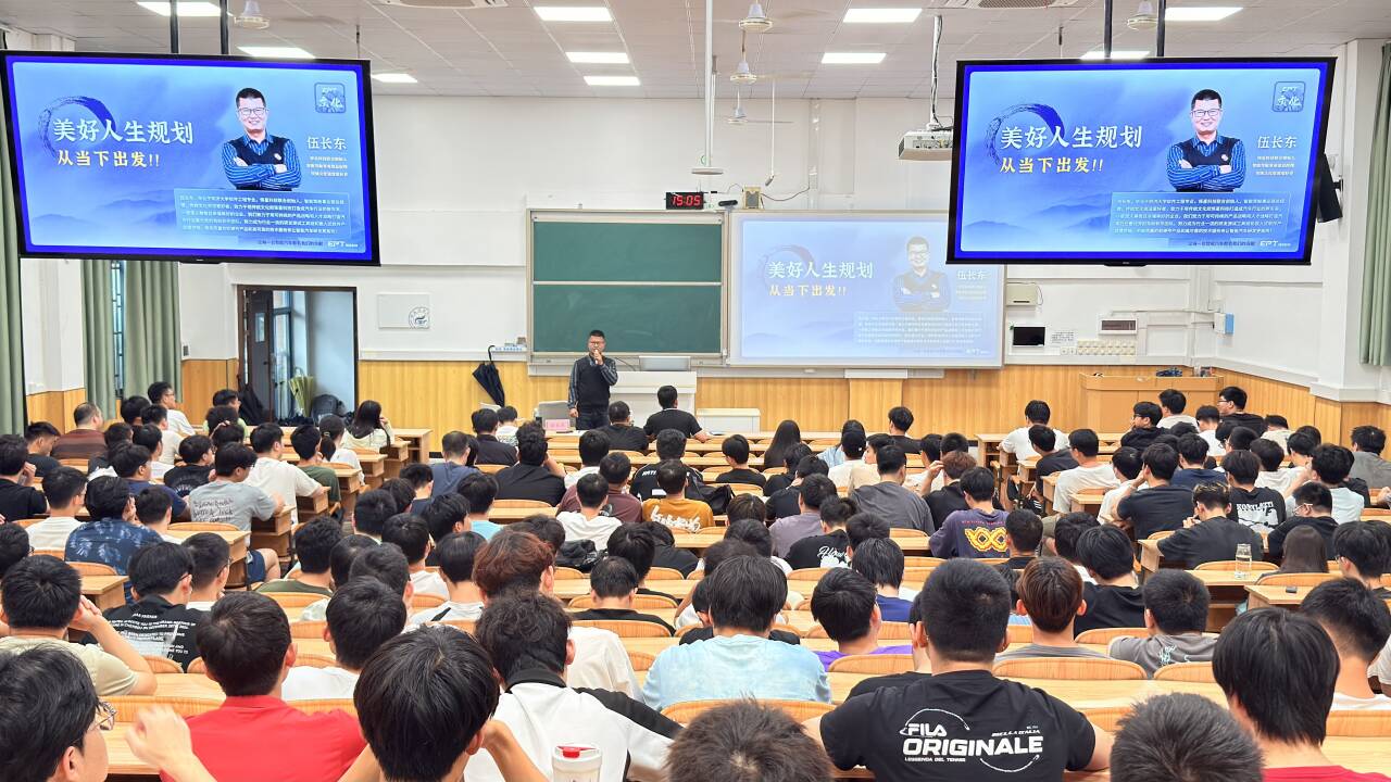 为助力学生明晰人生方向、提升职业规划能力,学院于2025年6月18日在06207教室举办“美好人生规划,从当下出发”主题学术讲座。本次讲座特邀怿星科技联合创始人、智能驾舱事业部总经理伍长东先生担任主讲人,围绕当代青年关注的成长话题展开深度分享。学院党委副书记王迎波、辅导员刘威及200余名学生参与会议。讲座由王迎波主持。