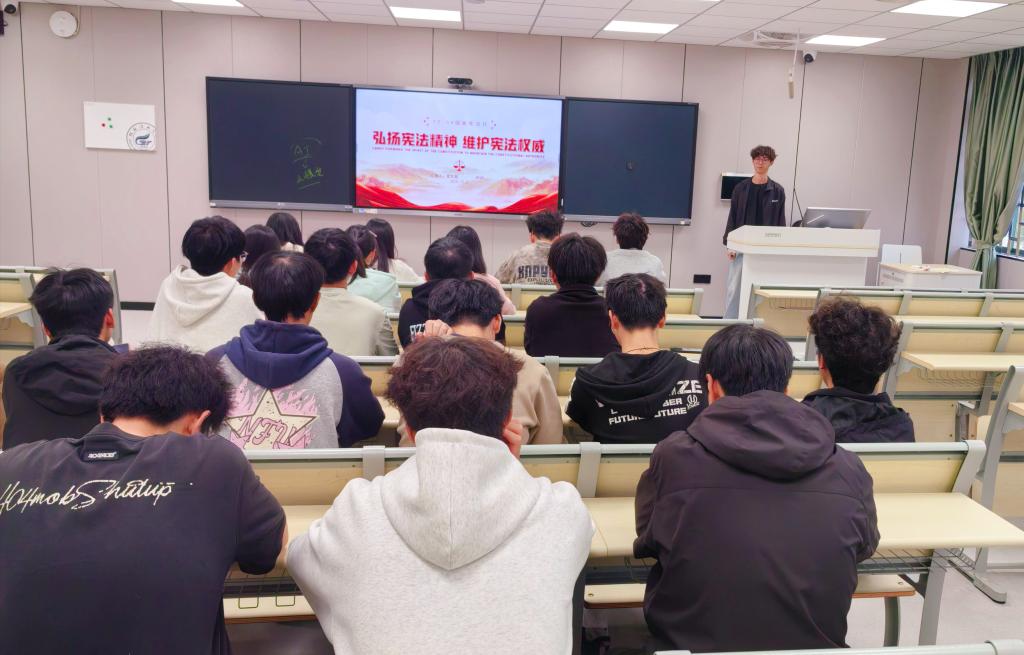 在本次活动现场,来自不同专业的团员代表围绕宪法的核心内容、法治精神的内涵及其时代意义进行了全面深入的分享与解读。他们不仅从宪法条文本身出发,详细阐释了其历史背景、法律原则和现实指导作用,还结合各自的专业知识与校园生活实际,展开了富有见地的多角度探讨。来自机械专业的同学从科研诚信和社会责任的角度,探讨了如何在学术活动中践行法治要求。此外,同学们还分享了在日常行为、学习科研以及社会交往中的具体实践案例,呼吁广大青年学生自觉树立宪法意识,以实际行动维护法治秩序、弘扬法治精神。