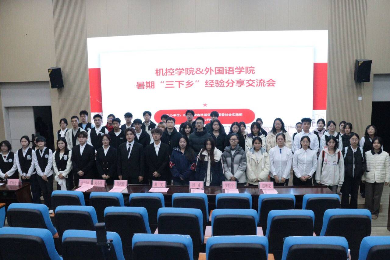 2025年12月5日,桂林理工大学机械与控制工程学院和外国语学院在雁山校区3栋博雅讲堂03316联合举办了“械语通途,梦译乡土”暑期“三下乡”经验分享交流会,目的是分享实践成果,激发学子投身基层服务的热情。机械与控制工程学院团委副书记刘威、外国语学院25级兼职辅导员韩笑,以及两院优秀实践团队代表、各学院社会实践部负责人参加了此次活动。