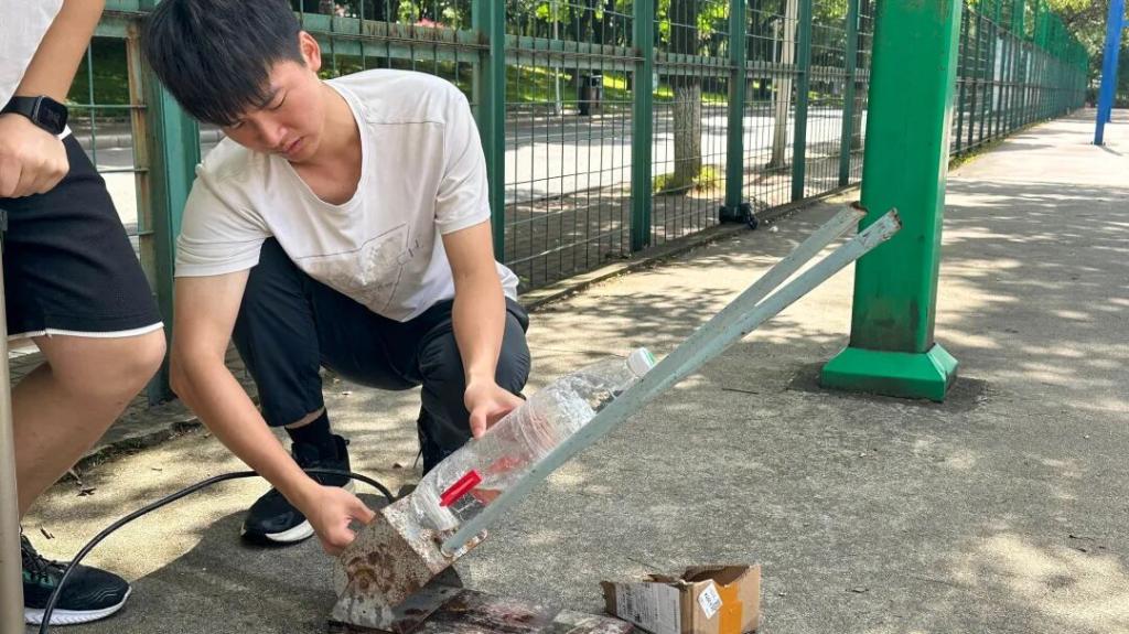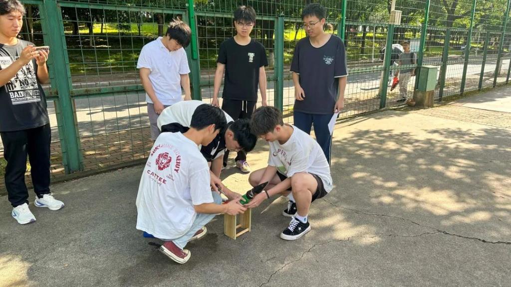 各小组成员成员分工制作“水火箭”现场