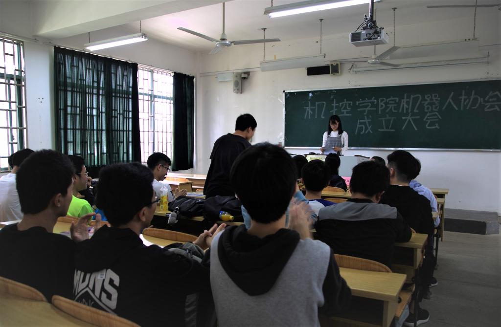 2018年4月2日12:10分,桂林理工大学机械与控制工程学院机器人协会在雁山校区05201教室召开成立大会。全体管理层成员及部分社员参与此次大会。出席大会的嘉宾有机控学院团委书记刘颖洁、协会指导老师张声岚老师以及各兄弟协会会长:院学生会主席李耀乾、团委副书记付天华、阳光心理协会会长蒙创树、科技协会会长田祥爽以及扬爱协会会长韦武谭。