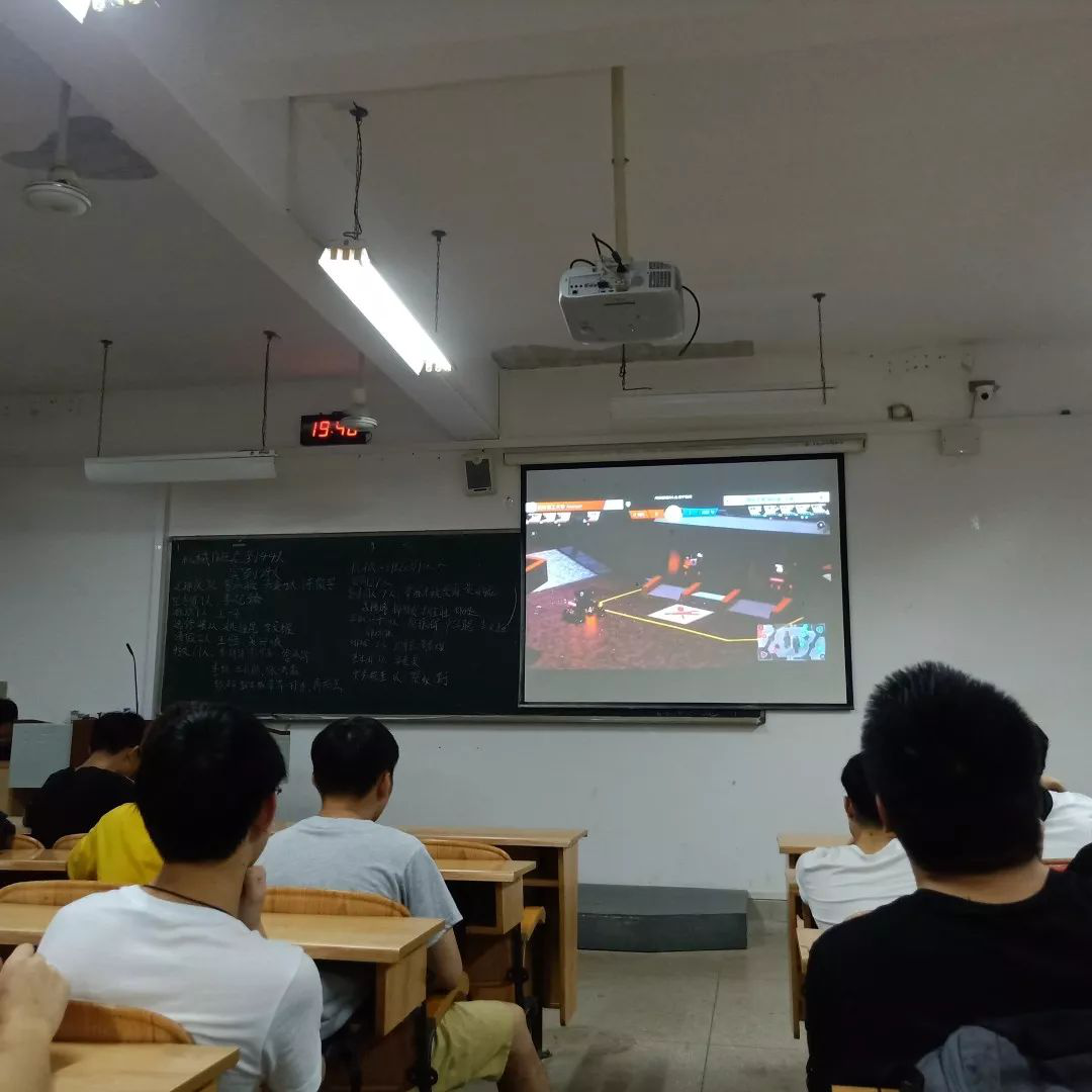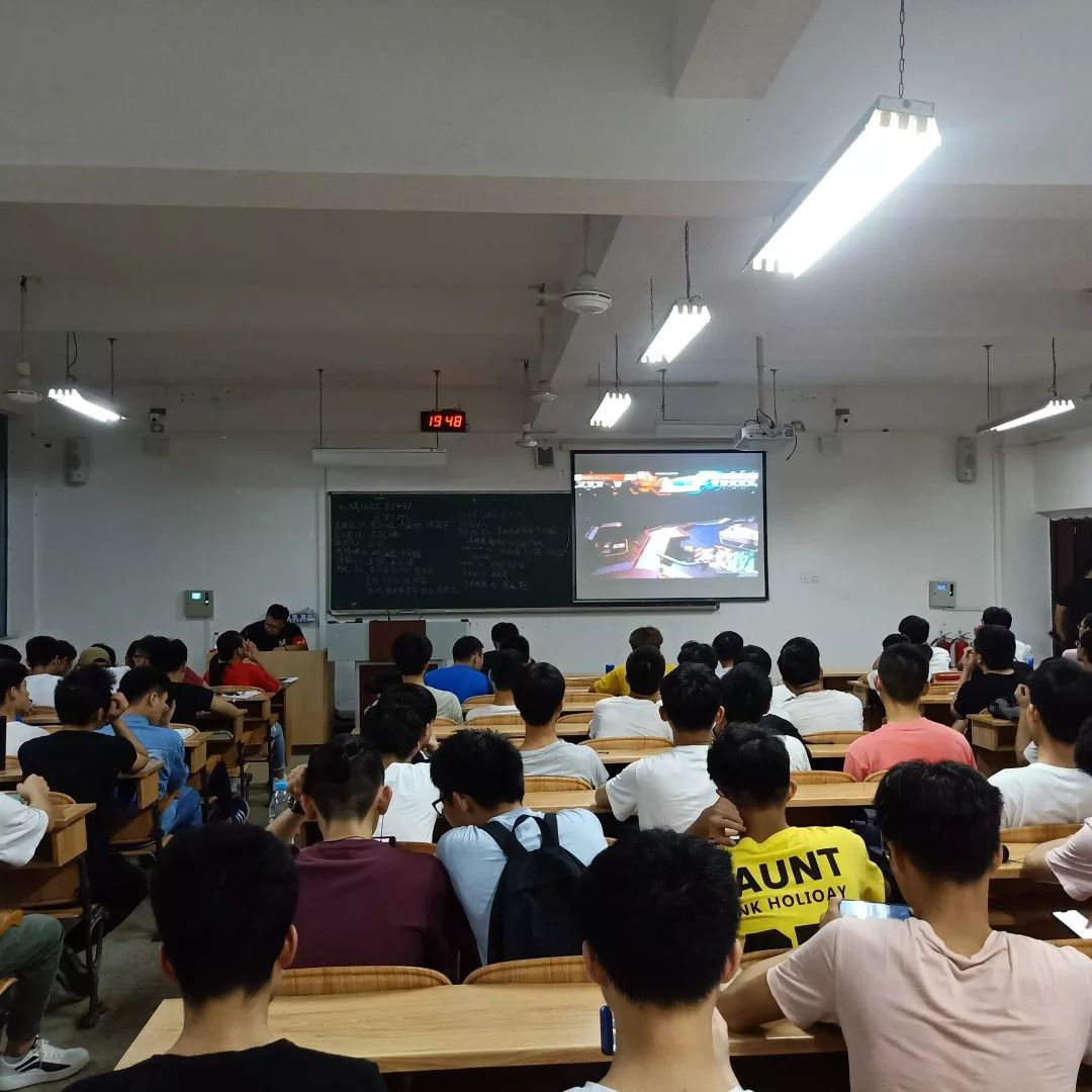 在比赛开始前,紧张激动的不仅仅是我们去参加比赛的成员们,在校的同学们对这一个赛事也是无比关注。为了满足同学们的需求,同时让同学们更好地了解我们的专业知识,产生浓厚的学习兴趣,18级辅导员于帅帅老师组织了18级所有同学观看了此次比赛的直播。