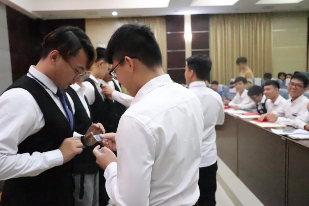 会议伊始,学院2017-2018届团委副书记付天华、学生会主席李耀乾、副主席覃东浩以及部门代表吴立清就往年工作展开总结,并对新一届学生会全体成员寄予了新的期望与目标。同时大会举行了换届及部门交接仪式,接着由2018-2019届团委副书记陈东东、学生会主席蒋殿龙、副主席何基甲依次上台发言,三位学长分别从“树人”、“立德”、“修身”三个观点出发,告诉大家团委学生会是以服务同学为宗旨,坚决反对 “官本位”思想,反对脱离青年,并对未来的工作活动明确了目标与规划。