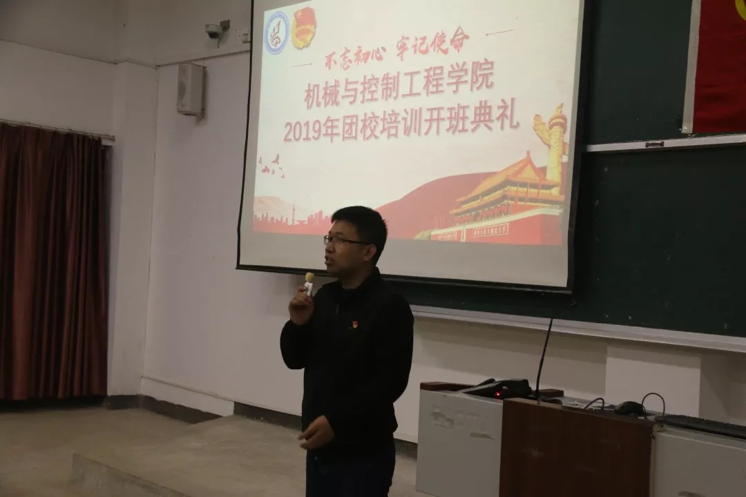 开班典礼在激昂的共青团团歌下拉开了帷幕。机控学院党委副书记王迎波老师首先作开班发言。在发言中,王迎波老师首先提醒同学们此次培训机会的难得,要求同学们珍惜培训机会。然后,王迎波老师又为同学们简单介绍了此次团校培训的目的。他要求,学生骨干应该认识到自己的身份,切实为同学们服务。他还希望同学们在此次团校培训中得到思想升华。
