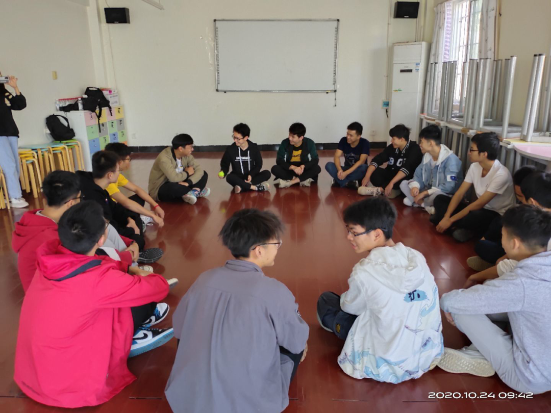 为了进行心灵探索,培养团队意识,提升协会的凝聚力,营造更加融洽的氛围,2020年10月24日9:30,在藤漳红老师的指导下,机械与控制工程学院阳光心理协会在校医院旁心理咨询中心403心理团辅室,开展以“提高心理素质,促进同学友谊”为主题的素质拓展活动,参加此次素质拓展活动的有心理协会的理事会成员,各个部门部长以及协会全体干事。