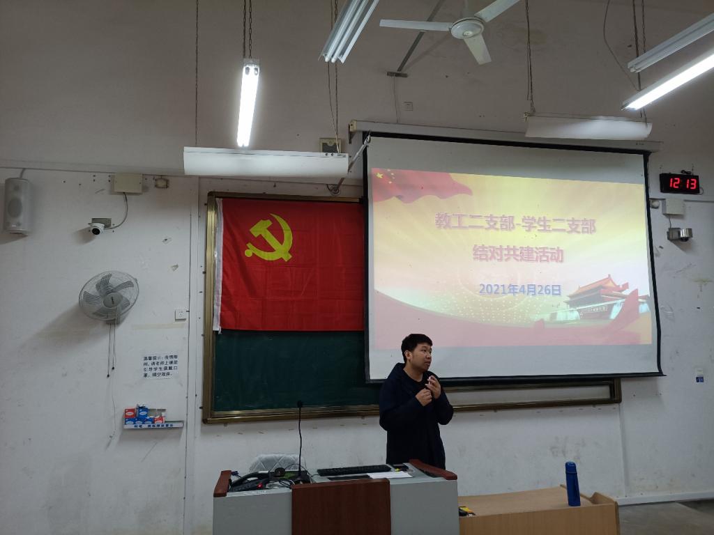 为进一步加强基层党组织建设,积极探索党建有效模式,4月26日,学院党委副书记王迎波副在07118教室主持召开教工二支部-学生二支部结对共建大会,与会的有教工二支部党员、学生二支部党员和积极分子。