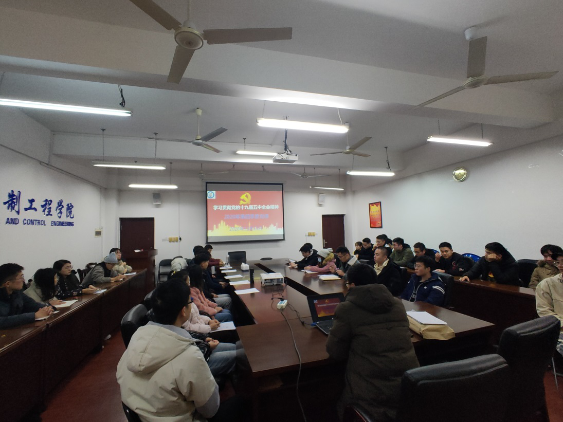 为深入学习贯彻党的十九届五中全会精神,12月18日,学生第三党支部、四支部在07215会议室召开全体党员大会,学院党委委员、副院长孙旋同志给大家讲“学习贯彻党的十九届五中全会精神”专题党课,支部全体党员参加了学习。