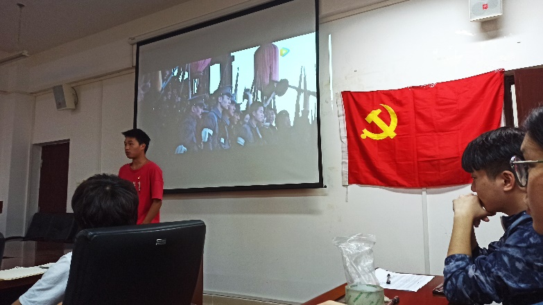 本次活动在组织委员秦江铭同志对活动主题的诠释中开始,会中,组织委员秦江铭同志指出,活动的意义是为了让同志们通过观看影视《建军大业》中南昌起义的片段,回顾历史,缅怀先烈,不忘根、不忘本、不改道、不停步,坚定信念跟党走,永不停歇创佳绩。谨记党员身份,时刻严格要求自己,以党员的先进性鞭策、激励自己,发扬优良传统,坚定理想信念,牢记职责使命,争做合格党员,以更加昂贵的精神、更加优异的业绩践行对党的庄严承诺。努力奋斗,为家国的发展添砖加瓦。