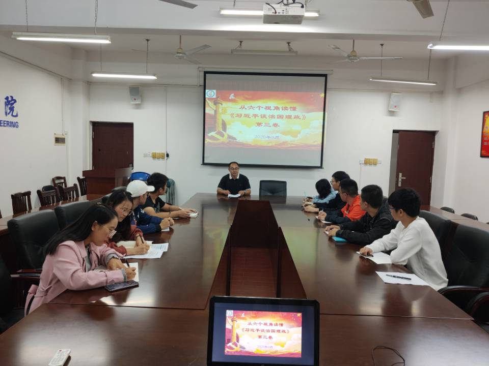 9月25日中午,学院创新基地党支部在雁山校区07215会议室召开了支部党员大会,学院党委书记耿俊茂为创新基地党支部上党课,专题学习《习近平谈治国理政》第三卷。支部书记刘培培主持支部党员大会。