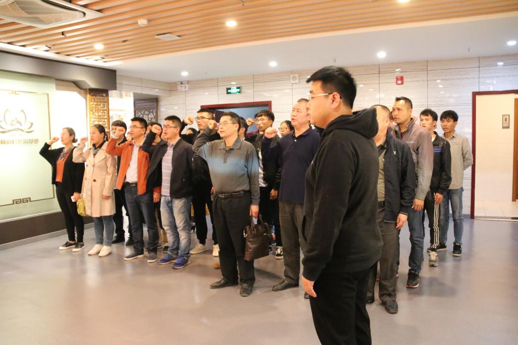 最后,在党务中心指导老师于帅帅领誓下,全体学生党员肃立在党旗前,举起右手,怀着一份敬畏与感悟重温了入党誓词。