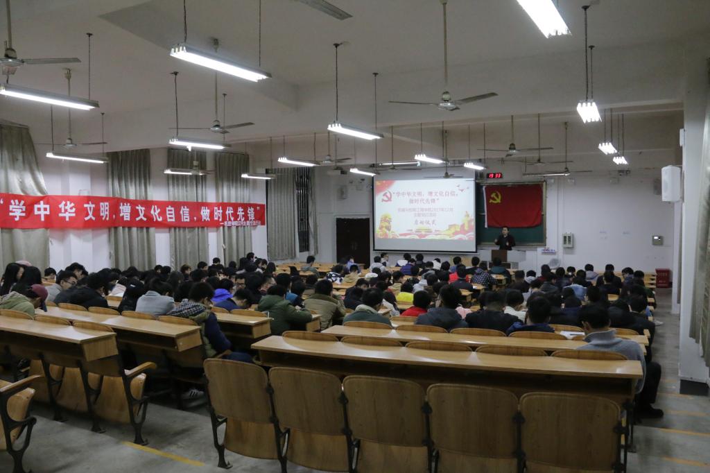 为深入学习贯彻习近平新时代中国特色社会主义思想和党的十九大精神,扎实推进“两学一做”学习教育常态化制度化,使我院广大党员深刻认识中华文化的丰厚博大,吸收民族文化智慧,培育党员荣国爱国情怀,增强党员对中华优秀传统文化的自信心,12月25日晚,我院12月为期一周的“学中华文明,增文化自信,做时代先锋”主题党日活动在雁山06105教室正式拉开序幕。