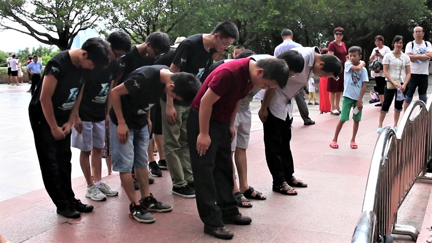 8月4日上午,在深圳参加2017年全国大学生机器人比赛社会实践团队的师生党员、积极分子来到深圳莲花山公园,向邓小平铜像敬献花篮,深切缅怀伟人的丰功伟绩和崇高风范。
