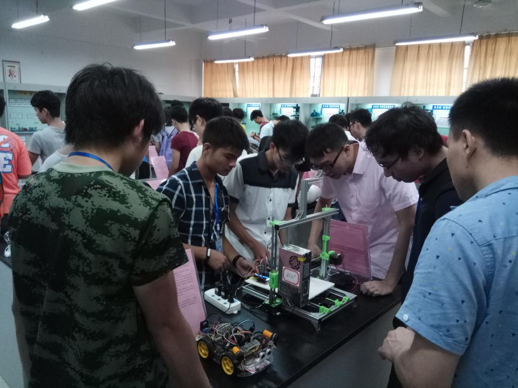 最后,全体党员共同参观学习了学院2017届本科毕业设计优秀作品展,本次展出作品包括“基于STC89C52的夜间行车预警系统”、“基于单片机的公交车燃爆应急处理系统”、“基于单片机控制的智能捕鼠器”、“基于无线传感网络的室内灯光控制系统”、“基于PLC的汽车轮毂跳动检测系统”、“便捷式甘蔗刀结构设计与研制”、“3D打印蛇形机器人模型设计与实现”、和“机器鱼模型设计与实现”等,涉及单片机控制、PLC控制、无线通信、3D打印、机械设计等多个领域。