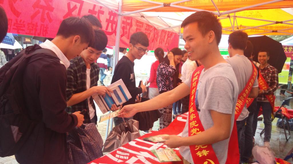 为贯彻落实学校2016年“学生资助政策宣传月”工作方案和深入推进我院“两学一做”学习教育工作进程,充分发挥我院学生党员的先锋模范作用,助力我院开展资助政策宣传,5月24日中午,我院党建办联合奋进社、宿管委于雁山校区1号食堂广场举办国家资助政策宣传及资助诚信签名活动。