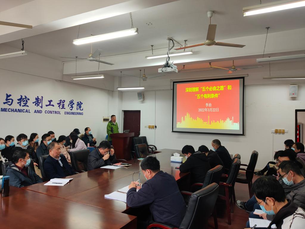 3月22日下午,学院党委书记李治在07215会议室为全体教工党员主讲“两会”精神专题党课。