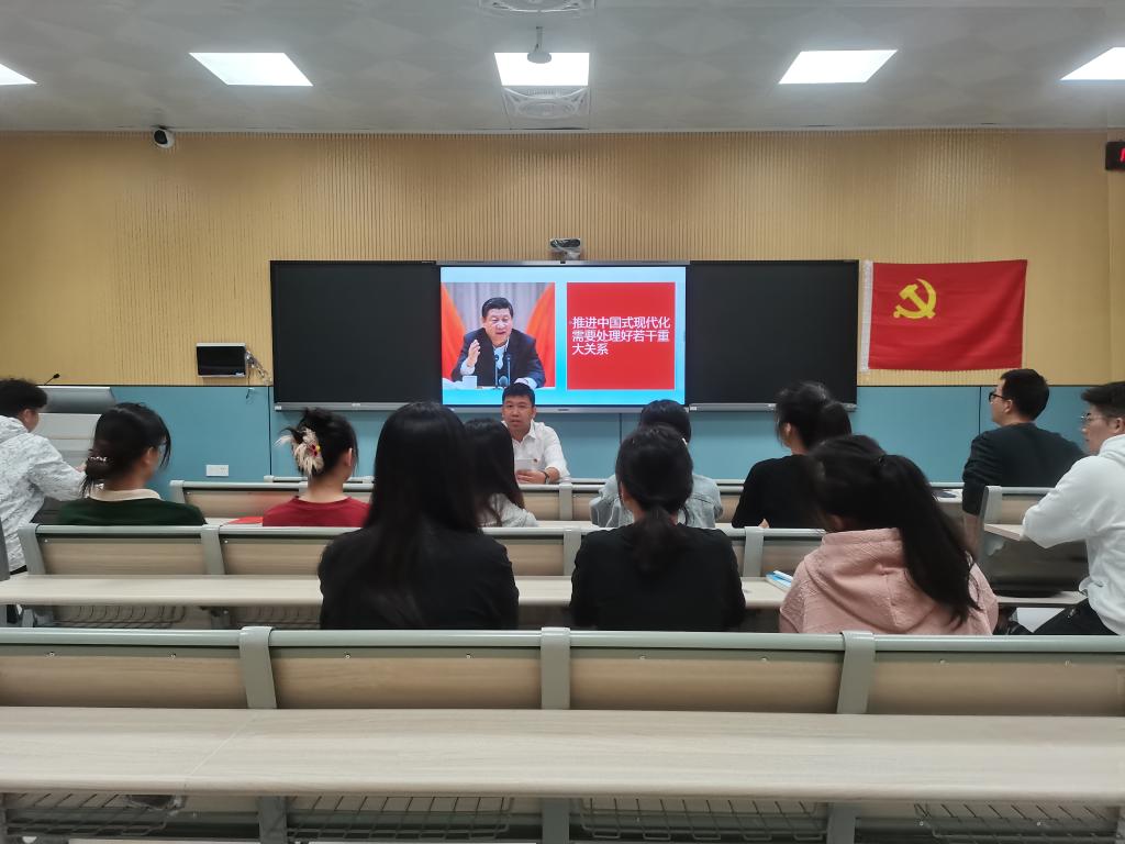 会议上,支部书记王迎波领学了习近平《推进中国式现代化需要处理好若干重大关系》文件精神,他强调,学生党员要时刻牢记党员身份,始终坚持党的领导,保持对党的路线方针政策的认同和拥护,正确理解顶层设计与实践探索、战略与策略、守正与创新、效率与公平、活力与秩序、自立自强与对外开放等重大关系,勇于担当,敢于创新,以实际行动践行初心使命。