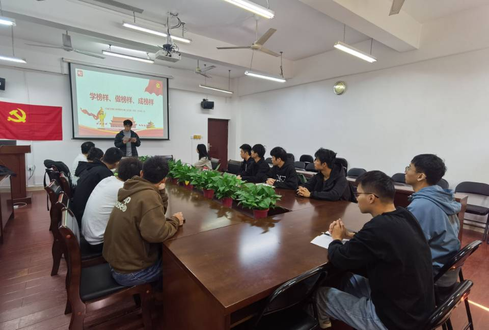 为深入学习贯彻习近平新时代中国特色社会主义思想,切实发挥榜样示范引领作用,激励广大学生党员干部进一步坚定理想信念,用实际行动践行榜样精神,汲取奋进力量。学生第二党支部于11月22日中午在07215开展了“学榜样、做榜样、成榜样”主题党日活动,党支部全体党员参加了此次党日活动。