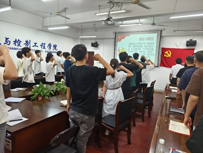 接着,全体党员重温入党誓词。铿锵有力的誓词深刻体现了党员们不忘初心,铭记历史,振兴中华的坚定信念。通过宣誓回顾入党初心,激励着每一位党员在今后的工作生活中履行党员的义务和责任。